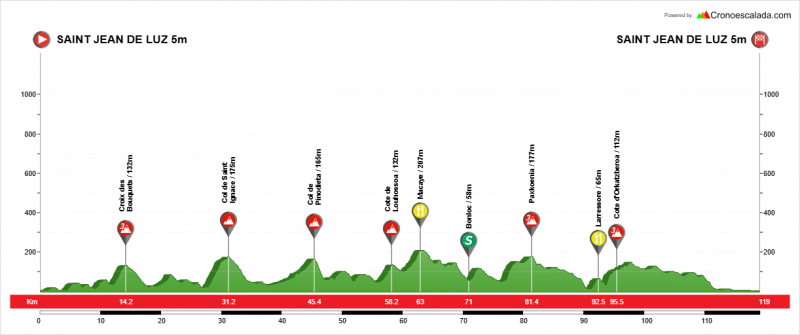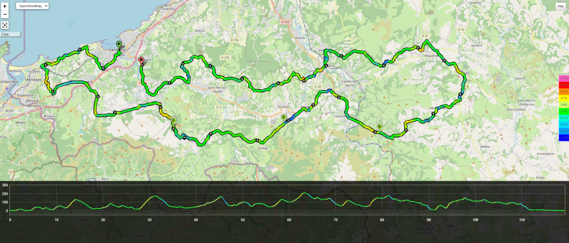 Vous partirez de la cité des corsaires, Saint-Jean-de-Luz, longerez la corniche jusqu’à la frontière avec l’Espagne toute proche. Votre route vous mènera alors à l’intérieur des terres basques. Alternant circuit roulant, cols et « belles bosses », vous apprécierez le paysage environnant tout au long des 120km et des 1950m de dénivelé.